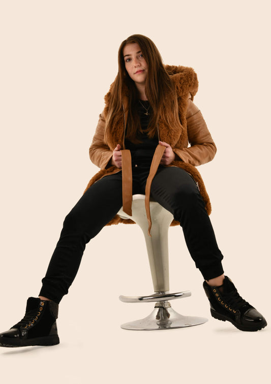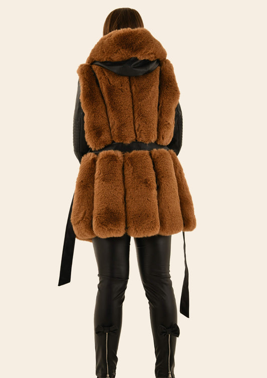 Vegan Leather Fur Hooded Coat